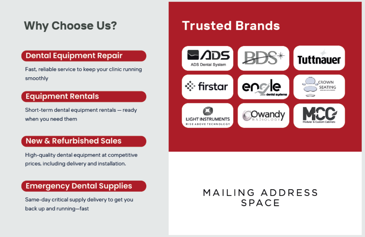 Yes! We take pride in being a full-service direct mail company that can handle your campaign from the dentist direct mail list, printing, and mailing. Our capabilities include any flyer, postcard, letter & envelope, and most mailers you see in your mailbox today. Let the experts make your life easier by handling the entire dentist mailing campaign today. Click here to read our 5-star customer reviews.